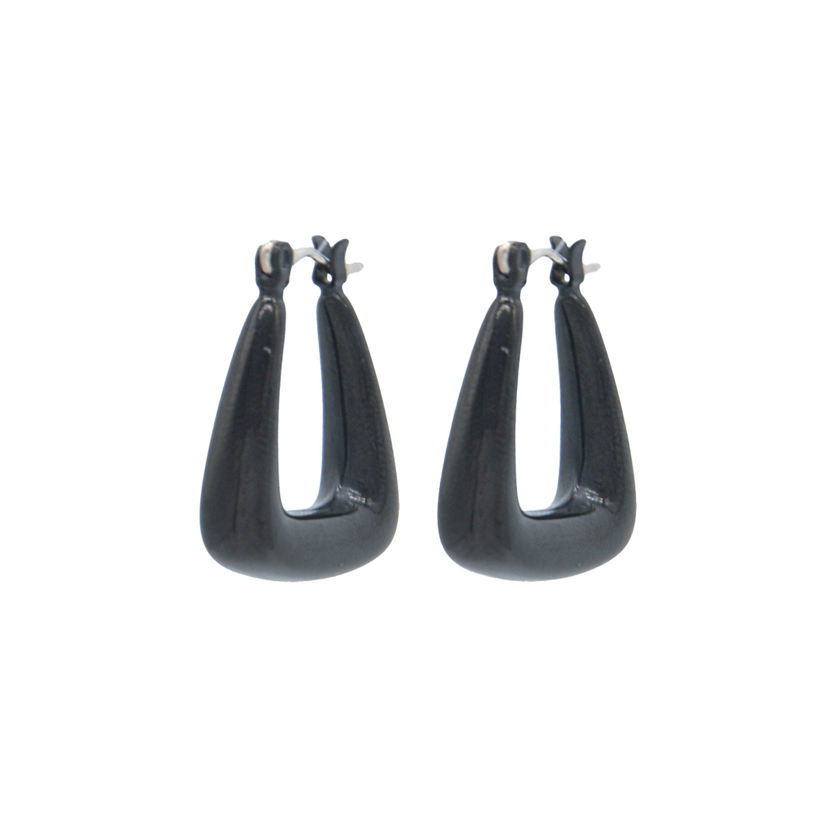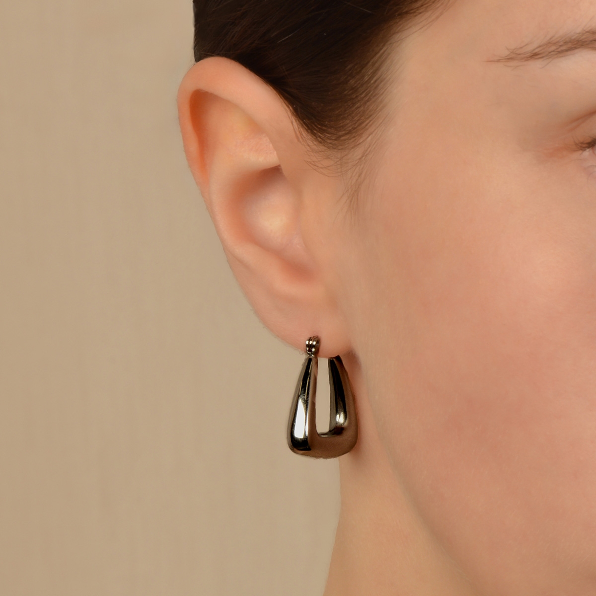 Stylishly chic our "Sleek Finish" earrings boast a rich modern spin on the classic hoop design with their thick geometric lines and smooth metallic finish. Sterling silver posts. Nickel and lead free jewellery.