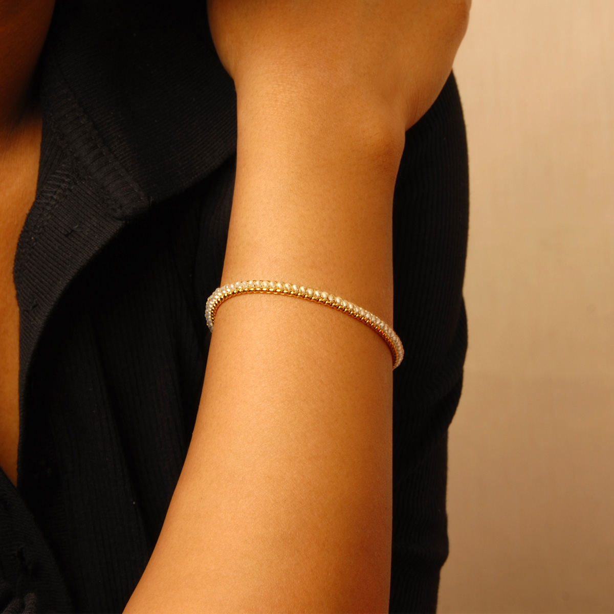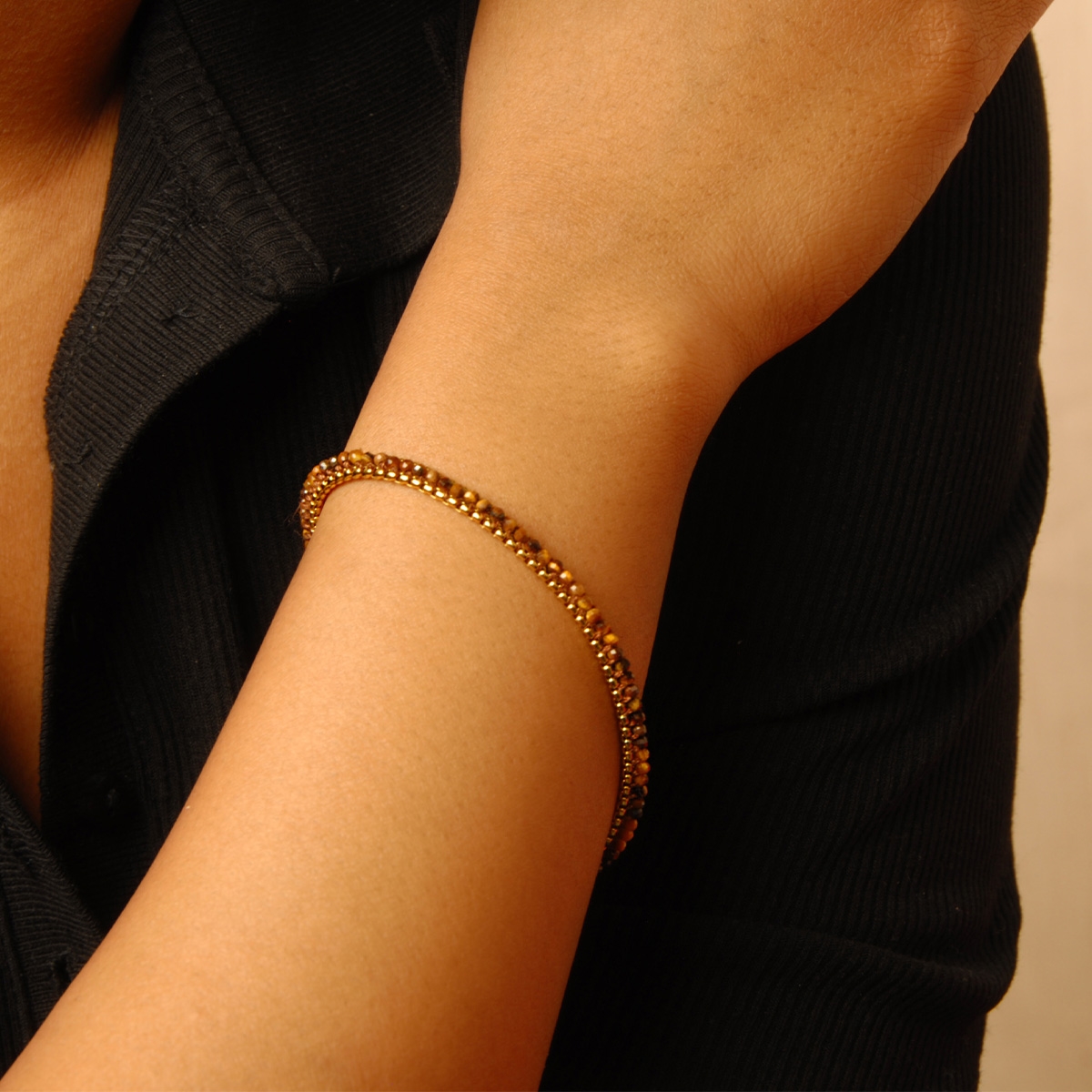 Add a beautiful pop of style to your look when you wear our "Eternally Trendy" bracelet. Flaunting an array of gemstone beads on a sleek designer chain bracelet finished in gold, you are sure to make a naturally lovely fashion statement. Nickel and lead free jewellery.