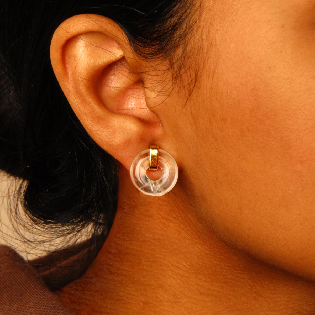 Add a beautiful pop of style to your look when you wear our "Eternally Trendy" earrings. Flaunting an open gemstone circle finished with a sleek golden bar, you are sure to make a naturally lovely fashion statement. Sterling silver posts. Nickel and lead free jewellery.
