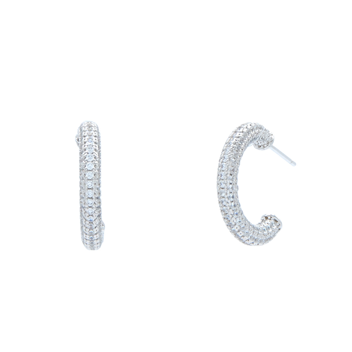 Classy and timeless, our "Extra Fine" earrings boast a sleek half-hoop design studded with dozens of dainty AAA cubic zirconia to give you a beautiful fashion staple. Sterling silver posts. Nickel and lead free jewellery.