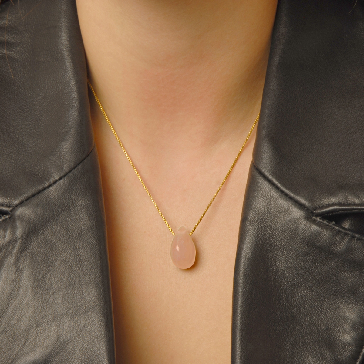 On trend, our rich "Genuine Droplet" neckpiece is enhanced with a stunning teardrop of genuine gemstone on a sleek 16" designer chain for the perfect naturally feminine touch. Nickel and lead free jewellery.
