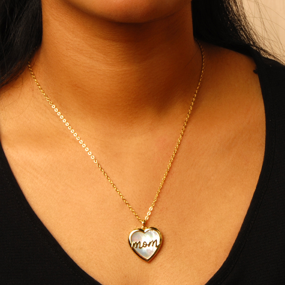 Spoil your mother with our gorgeous "Love & Admire" keepsake neckpiece flaunting an exquisite "MOM" pendant designed with a heart-shaped mother of pearl center suspended from a sleek 18” designer chain. Nickel and lead free jewellery.