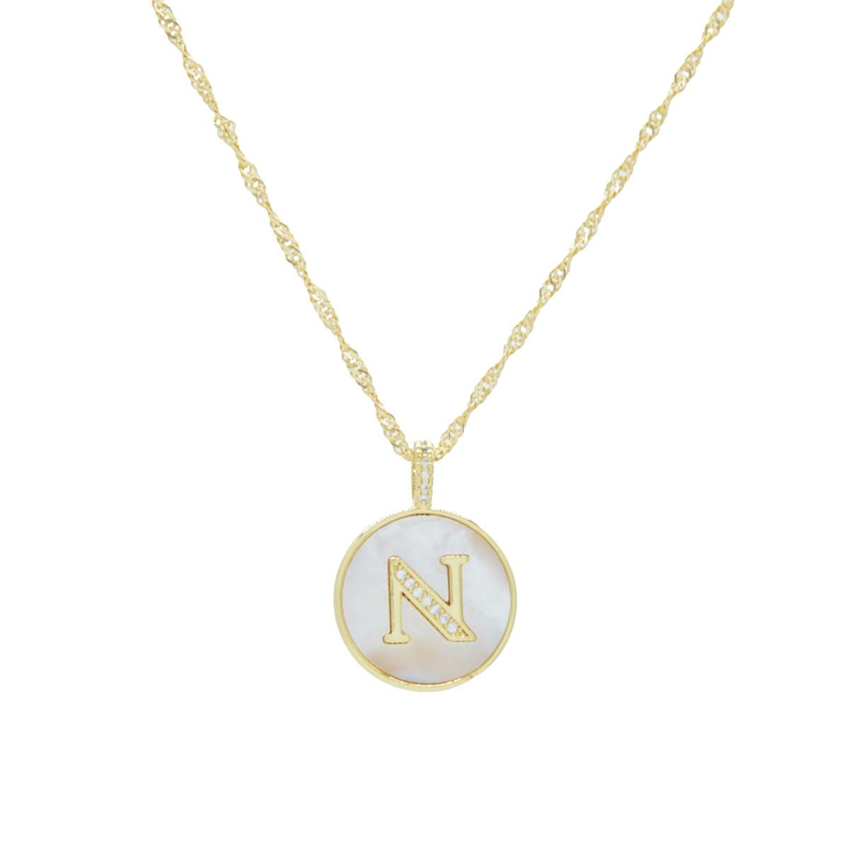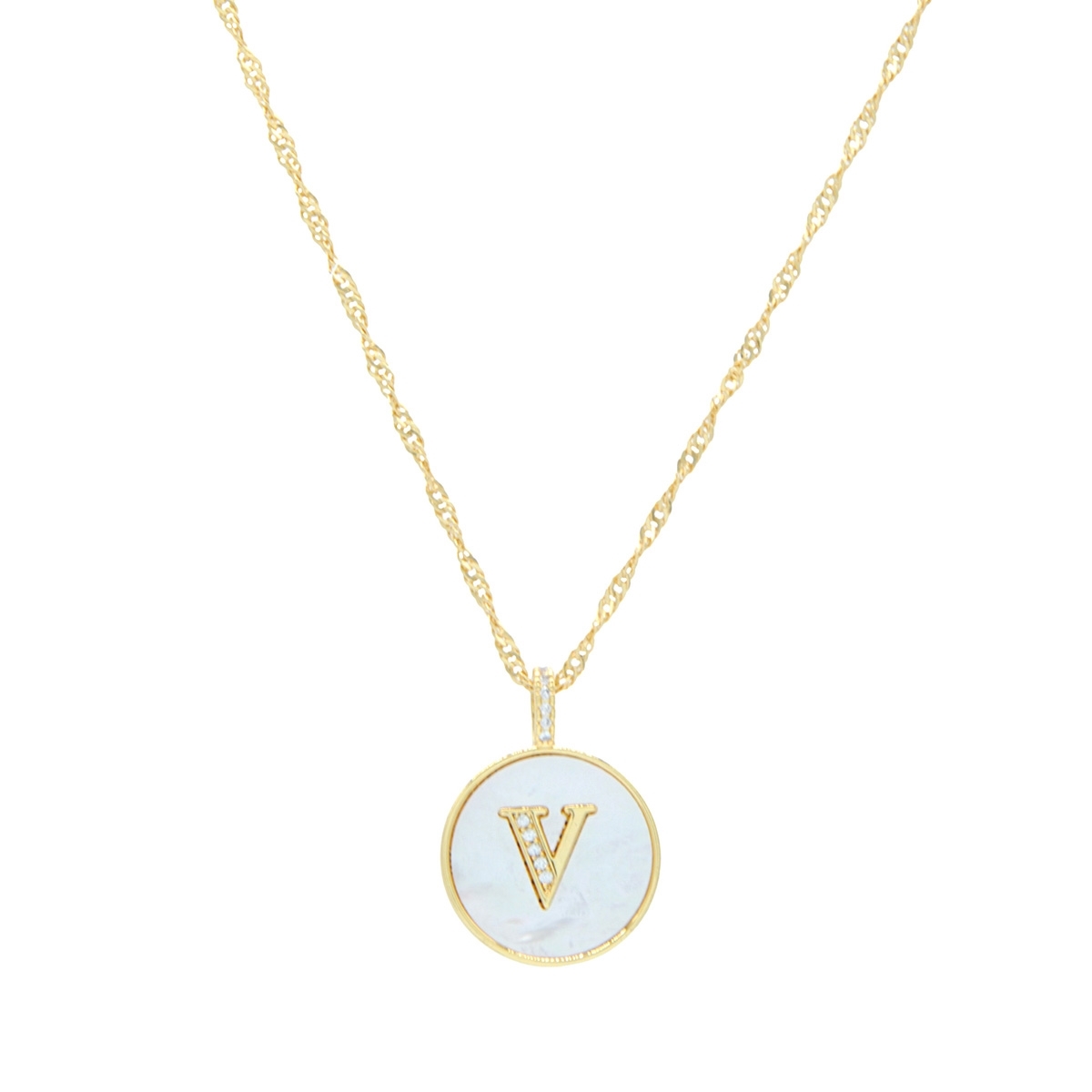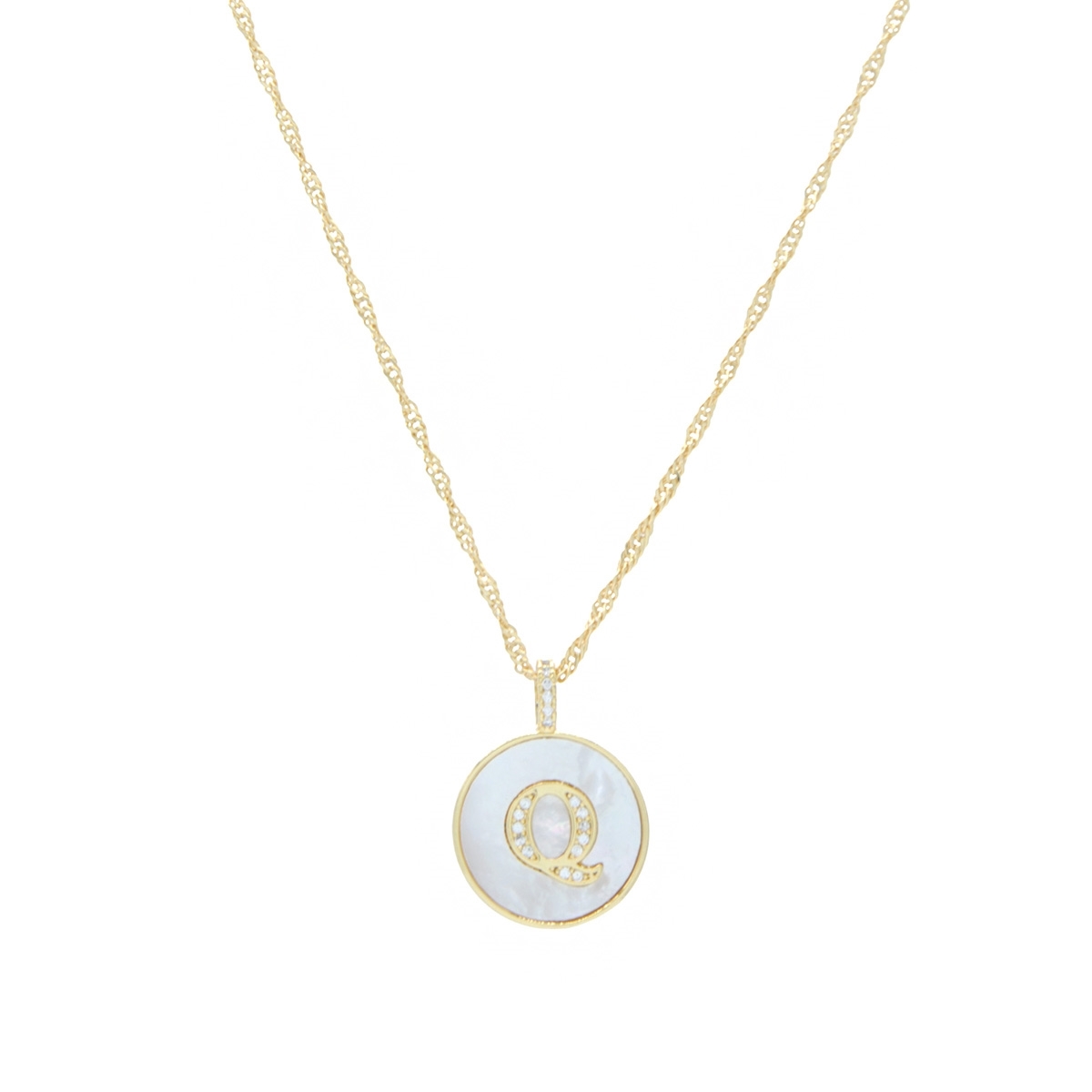 Treat yourself or a loved one with our trending "Personalized Luxury" initial pendant. This stunning combination of genuine mother of pearl and sparkling AAA cubic zirconia is the perfect way to personalise your look. 18" designer chain with 2" extension. Nickel and lead free jewellery.