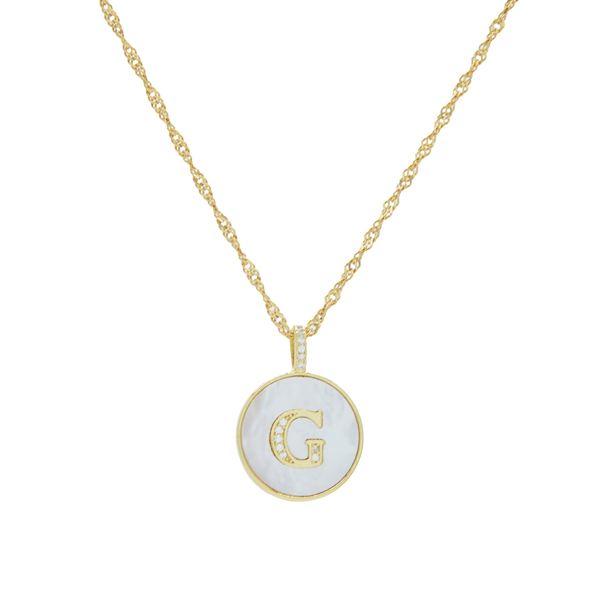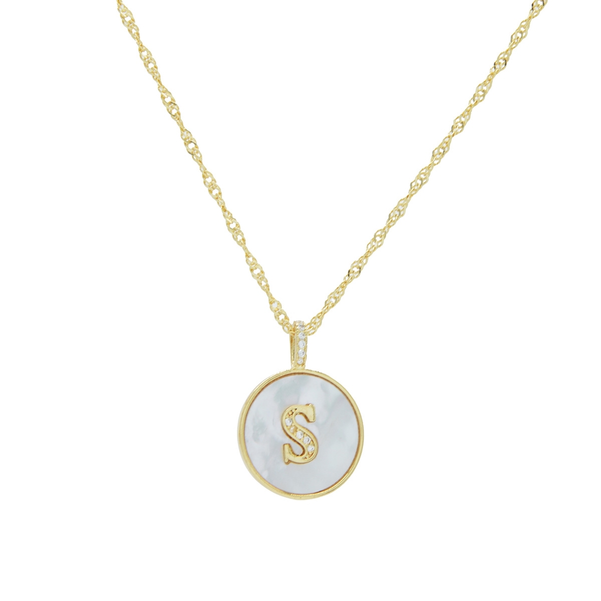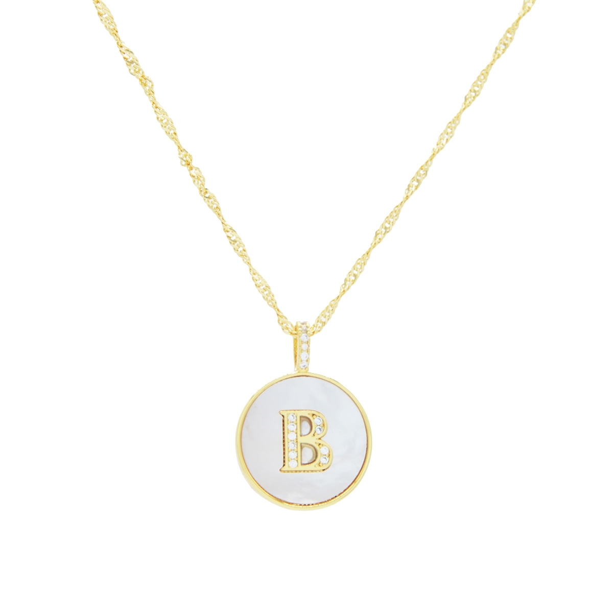 Treat yourself or a loved one with our trending "Personalized Luxury" initial pendant. This stunning combination of genuine mother of pearl and sparkling AAA cubic zirconia is the perfect way to personalise your look. 18" designer chain with 2" extension. Nickel and lead free jewellery.