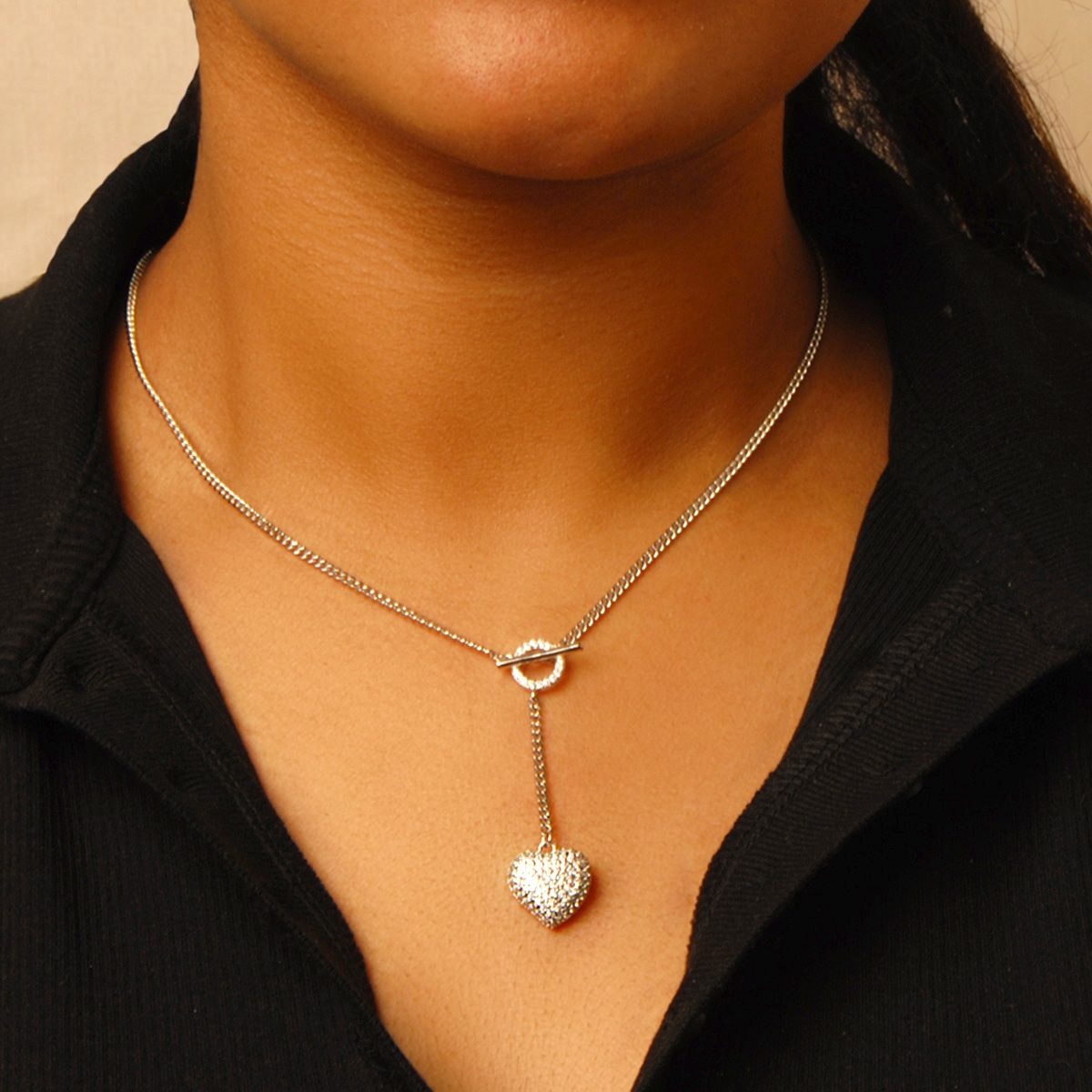 Unleash your romantic style when you wear our "Yours Forever" neckpiece. Flaunting a stunning heart drop beautifully embellished with shimmering AAA cubic zirconia, suspended from a stunning toggle clasp on an 18” designer chain, this chic design is sure to add flirty luxury to your look. Nickel and lead free jewellery.